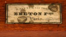 It consists of brass bar divided into centimeters and mounted on mahogany board, along the bar 6 stands can be moved and fastened in position by means of screws.