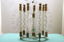 Popular electrostatic accessories where a dramatic electric display would be created if a static charge were applied to the brass ball finial atop the hand-blown glass tube, the charge would spiral down the path of tin foil disks leading down the tube(s).